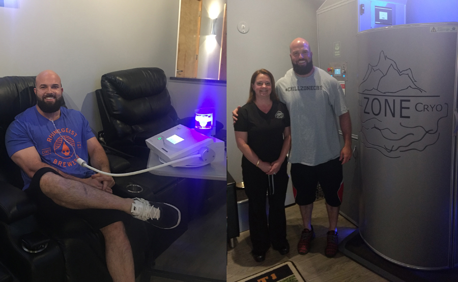 首先,介绍一下Kyle Jones和NanoVi的关系背景,Kyle是职业高尔夫球协会球员,同时也是一位著名大力士。他在辛辛那提的Chill Zone Cryo(冷冻疗法修复)进行修复,冷冻修复中心的Charles(查尔斯)和Lesa Smith(莱斯·史密斯)负责帮助他进行修复治疗(帮助监督会员和寻求前沿修复的人群的修复过程中)。冷冻修复中心把NanoVi设备加入了他们的修复室,从而为客户提供更大强度的修复力。因此Kyle Jones接触到了NanoVi。