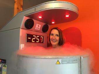 当然,我们认为实验室里最棒的设备是我们的NanoVi™ 设备(事实上也确实是),不过我们参观前就已经知道NanoVi有多么棒了。从字面意义上,毫无疑问,Cryo冷冻疗法是我们认为最酷的设备。该设备疗程为两分钟,温度低至零下260度(当然是华氏度,因为我活下来啦,而且感觉很棒!)