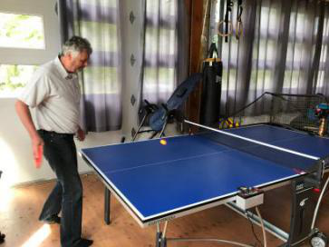 我们为人最有趣的设备是一台乒乓球机,它可以帮助人们提高思维和身体的灵活度。我设置了很慢的速度,但仍是把球打得到处都是(它其实有一个安全网,但我的技术水平实在有点低)。这似乎是一个在提高灵活度的同时享受乐趣的好方法。